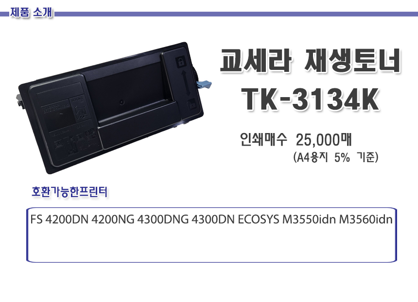 교세라 T/C 호환 TK-3134K 검정 25K FS 4200DN 4200NG 4300DNG 4300DN ECOSYS M3550idn M3560idn