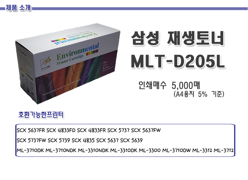 > 삼성 T/C 호환 MLT-D205L 검정 5K SCX 5637FR 4833FD 4833FR 5737 5637FW 5737FW 5739 4835 5637 5639 ML 3710DK 3710NDK 3310NDK 3310DK 3300 3710DW 3312 3712