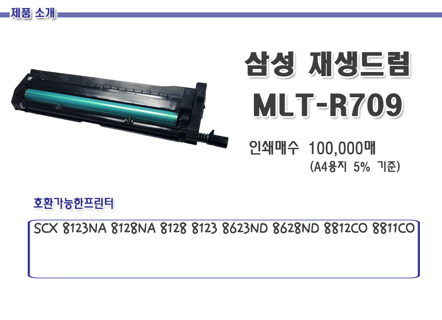 > 삼성 D/U 호환 MLT-R709 검정 100K SCX 8123NA 8128NA 8128 8123 8623ND 8628ND 8812CO 8811CO