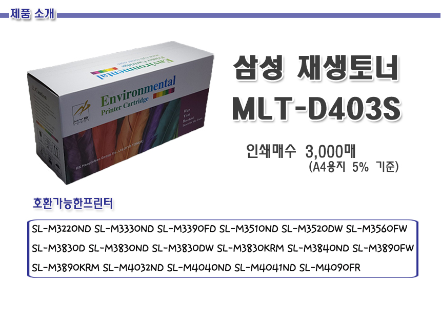 > 삼성 T/C 호환 MLT-D403S 검정 3K SL M3220ND M3330ND M3390FD M3510ND M3520DW M3560FW M3830D M3830ND M3830DW M3830KRM M3840ND M3890FW M3890KRM M4032ND M4040ND M4041ND M4090FR