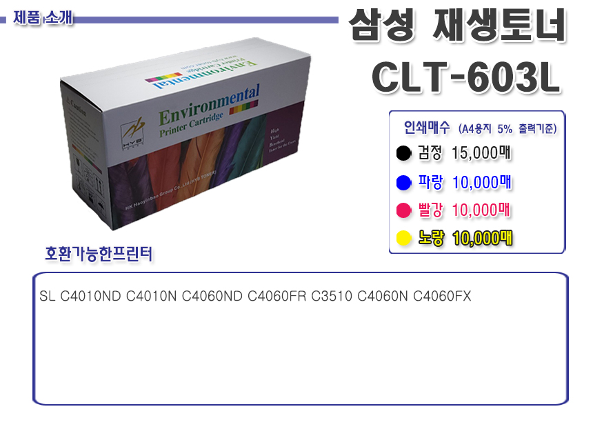 삼성 T/C 호환 CLT-603L 4색1택 SL C4010ND C4010N C4060ND C4060FR C3510 C4060N C4060FX