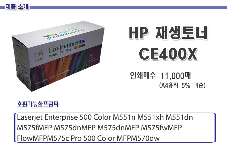 > HP T/C 호환 CE400X 검정 11K Laserjet Enterprise 500 Color M551n M551xh M551dn M575fMFP M575dnMFP M575dnMFP M575fwMFP FlowMFPM575c Pro 500 Color MFPM570dw