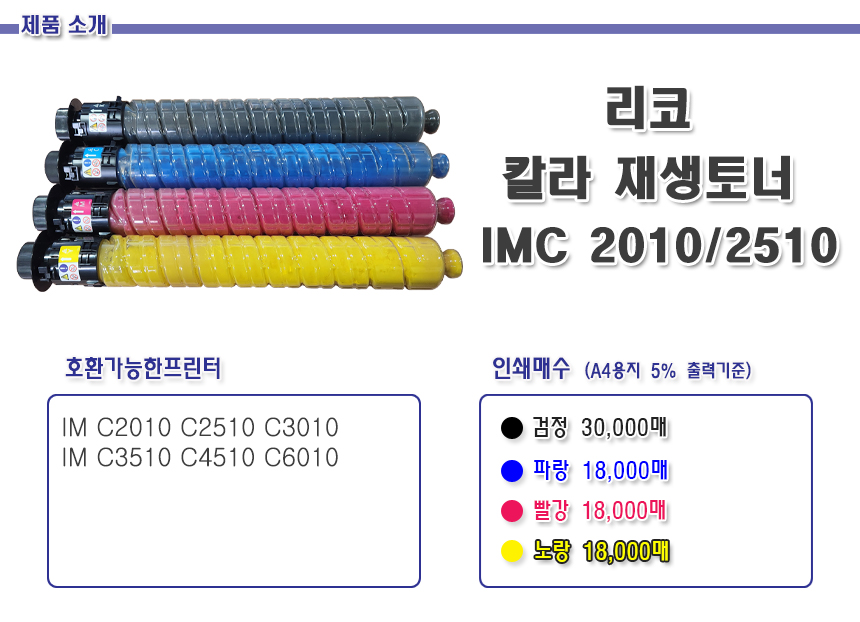 > 리코 T/C 호환 IMC 2010 2510 4색1택 IM C2010 C2510 C3010 C3510 C4510 C6010