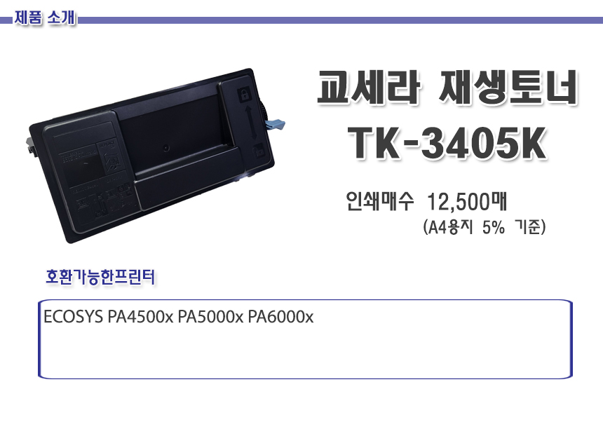 > 교세라 T/C 호환 TK-3405K 검정 12.5K ECOSYS PA4500x PA5000x PA6000x