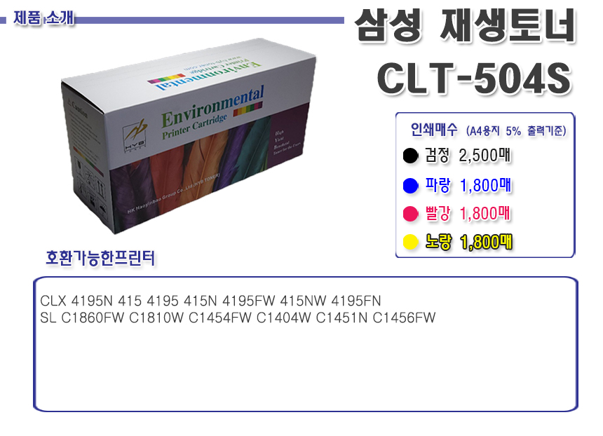 > 삼성 T/C 호환 CLT-504S 4색1택 CLX 4195N 415 4195 415N 4195FW 415NW 4195FN SL C1860FW C1810W C1454FW C1404W C1451N C1456FW