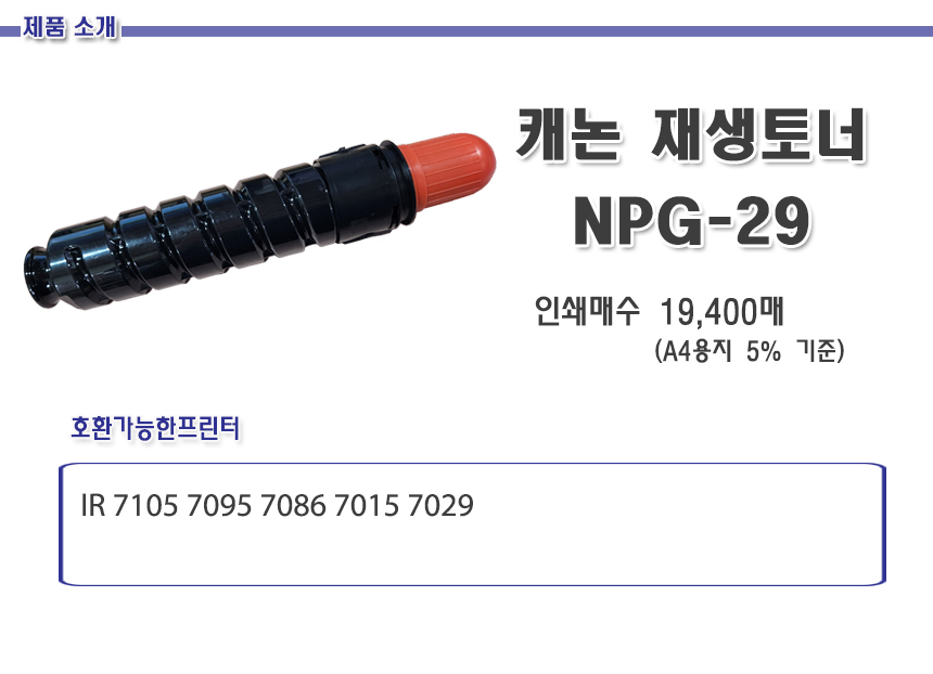 > 캐논 T/C 호환 NPG-29 검정 19.4K IR 7105 7095 7086 7015 7029