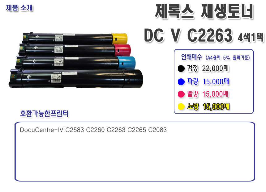 제록스 T/C 호환 DC V C2263 검정 22K DocuCentre-IV C2583 C2260 C2263 C2265 C2083