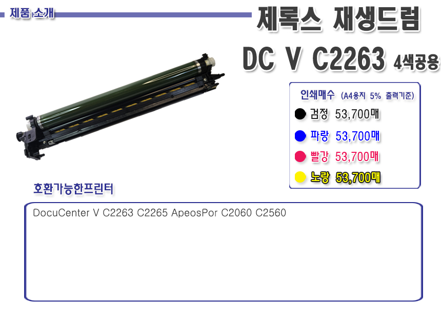 제록스 D/U 호환 DC V C2263 CT351088 4색공용 74K DocuCenter V C2263 C2265 ApeosPor C2060 C2560
