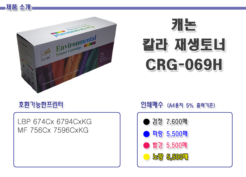 캐논 T/C 호환 CRG-069H 4색1택 LBP 674Cx 6794CxKG MF 756Cx 7596CxKG